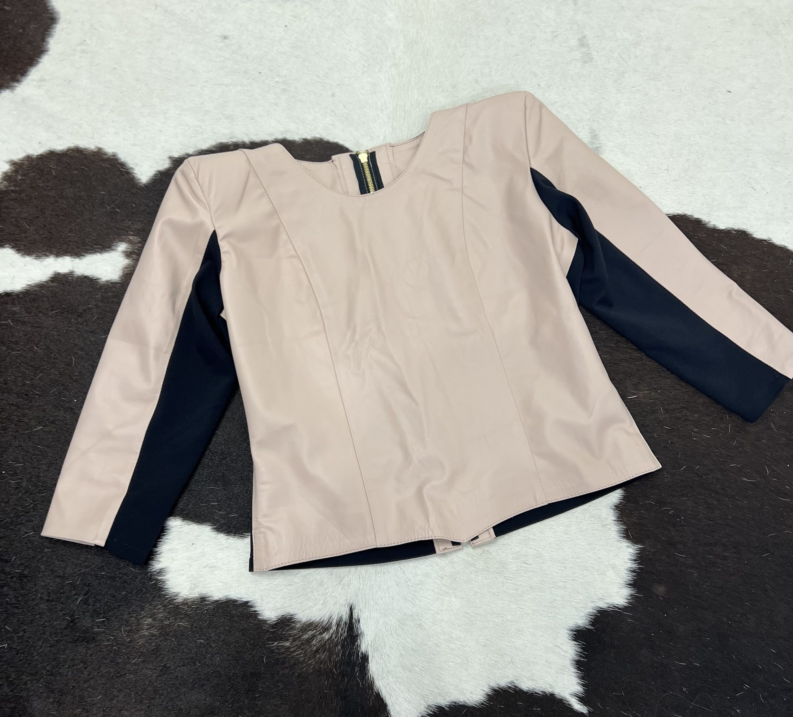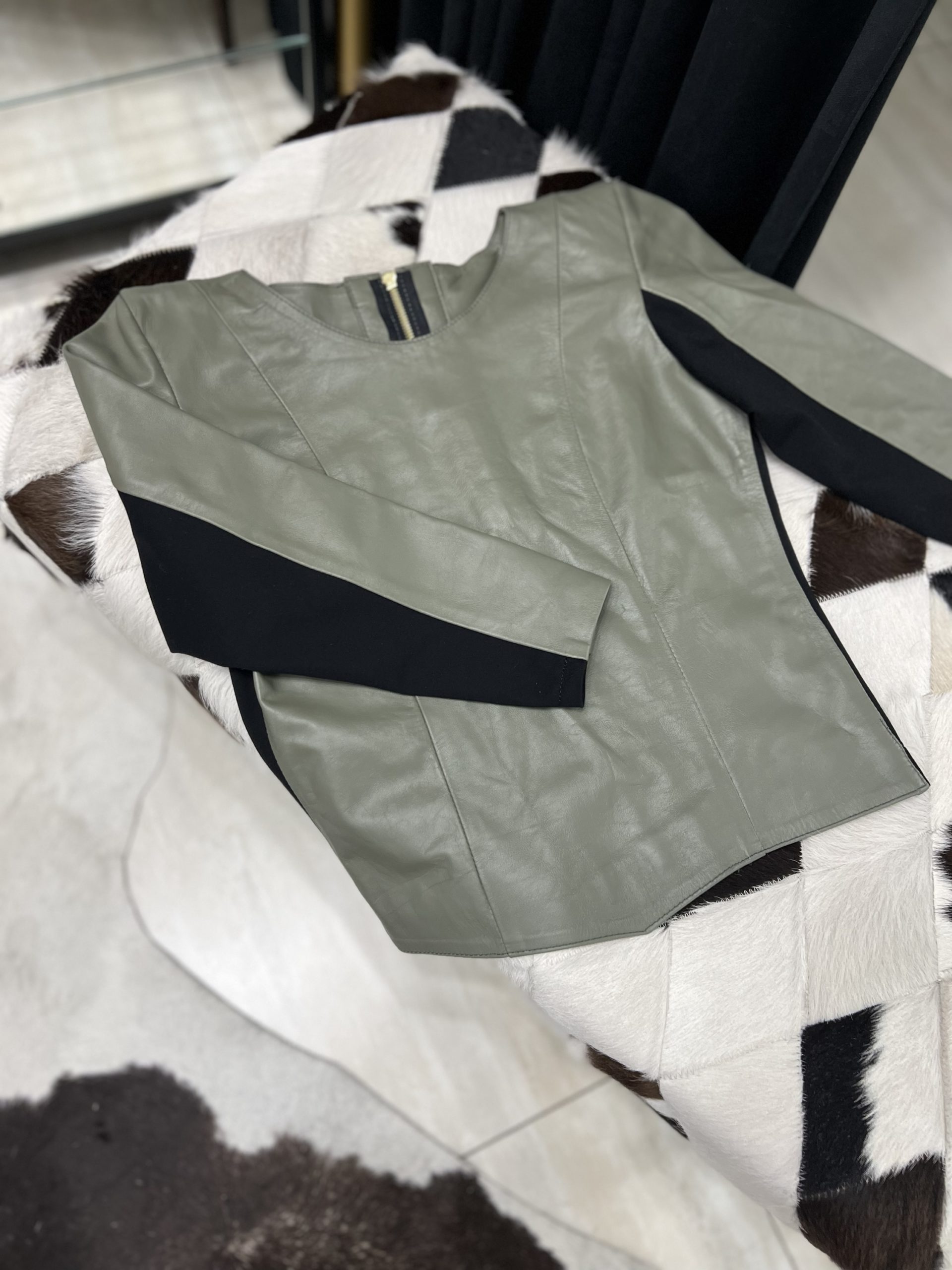 A Blusa Meia Manga com Ombreiras é a escolha ideal para quem busca um toque de elegância e modernidade em suas produções. Confeccionada em couro legítimo (couro pelica) e malha elastano nas costas, essa blusa apresenta um design sofisticado com ombreiras que adicionam estrutura e personalidade ao visual. As mangas médias conferem um equilíbrio perfeito entre conforto e estilo, tornando-a uma peça versátil para diferentes ocasiões.