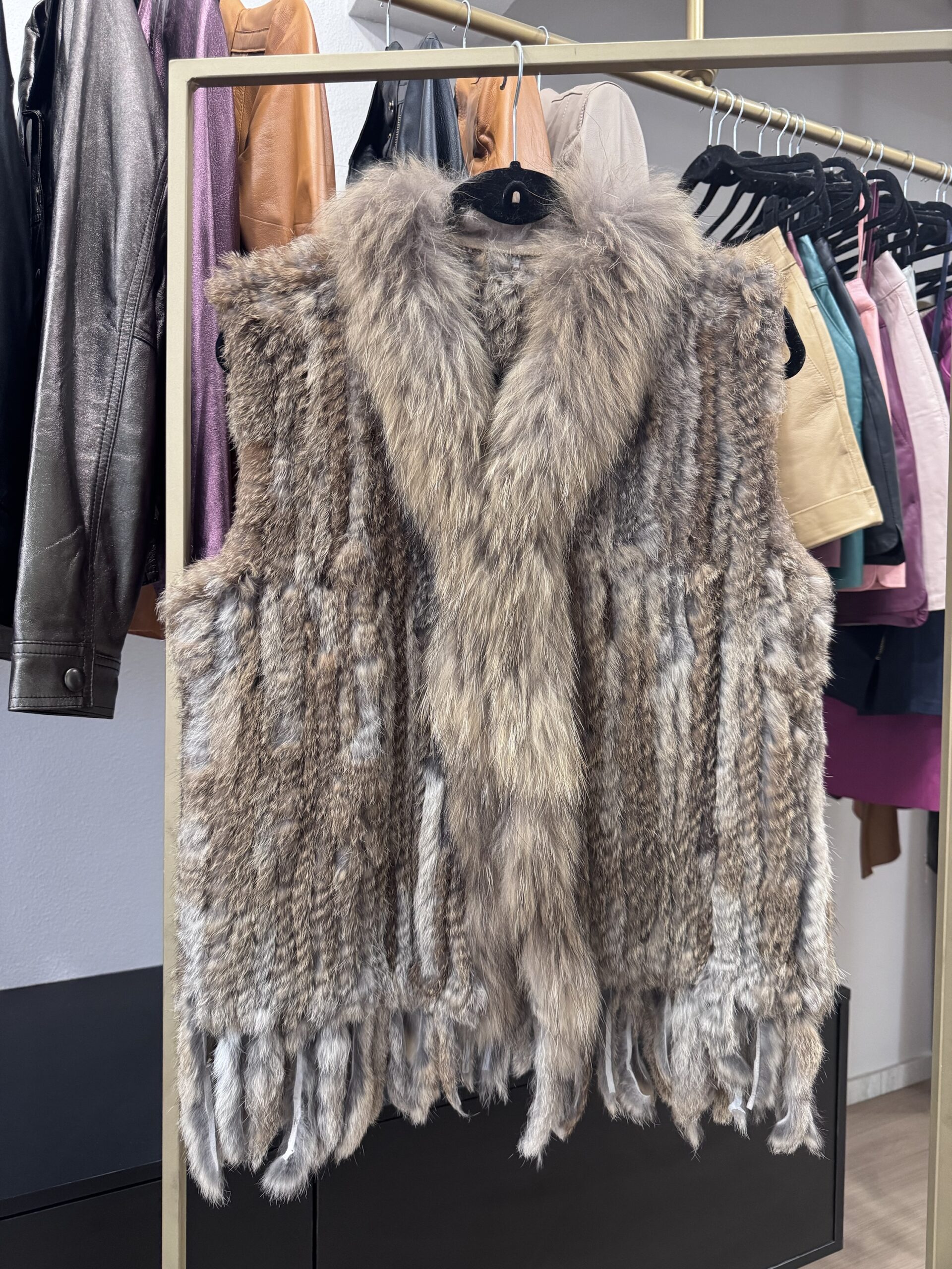 Colete de pele, pele natural, tamanho único.