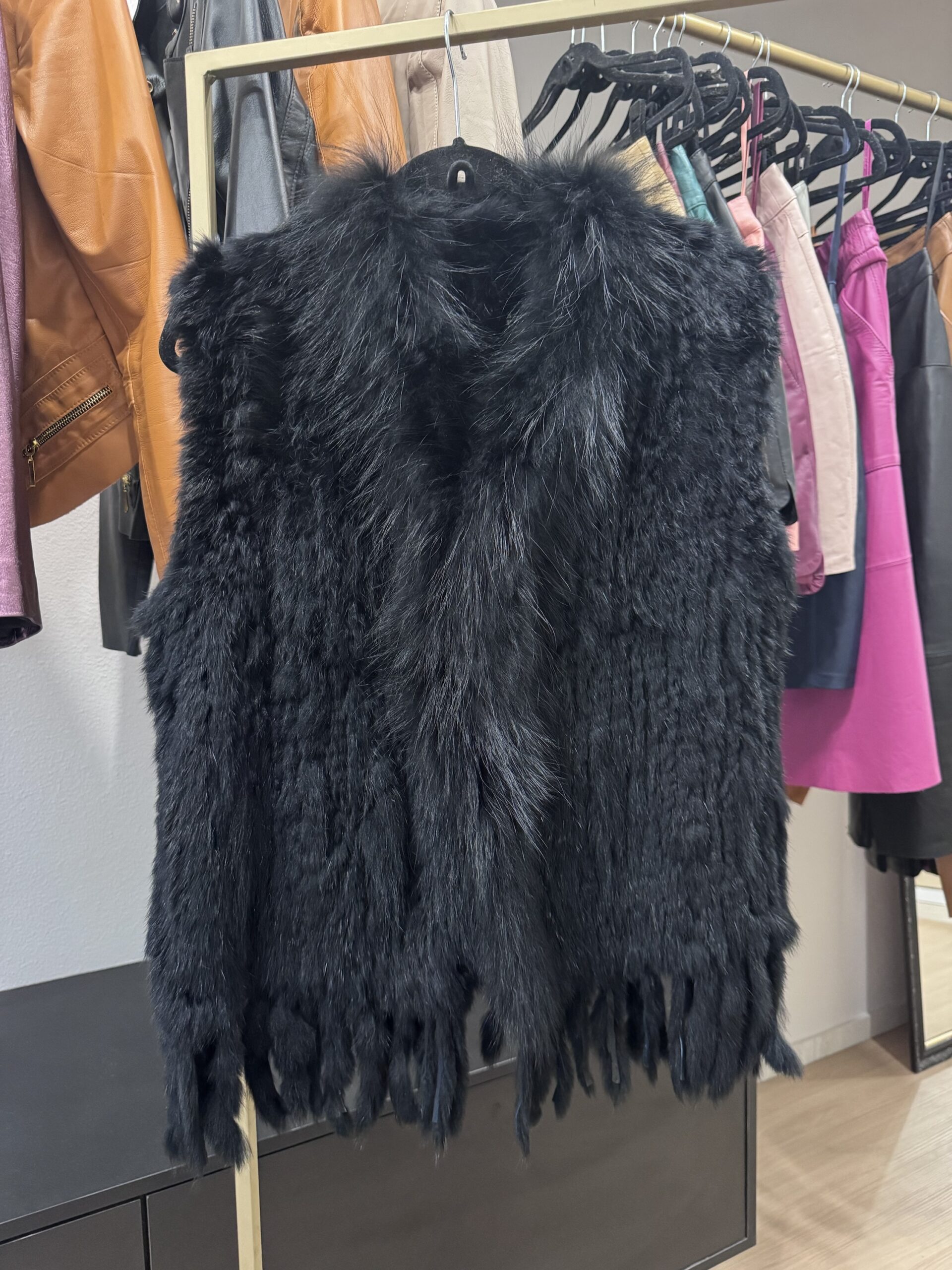 Colete de pele, pele natural, cor preto, tamanho único.