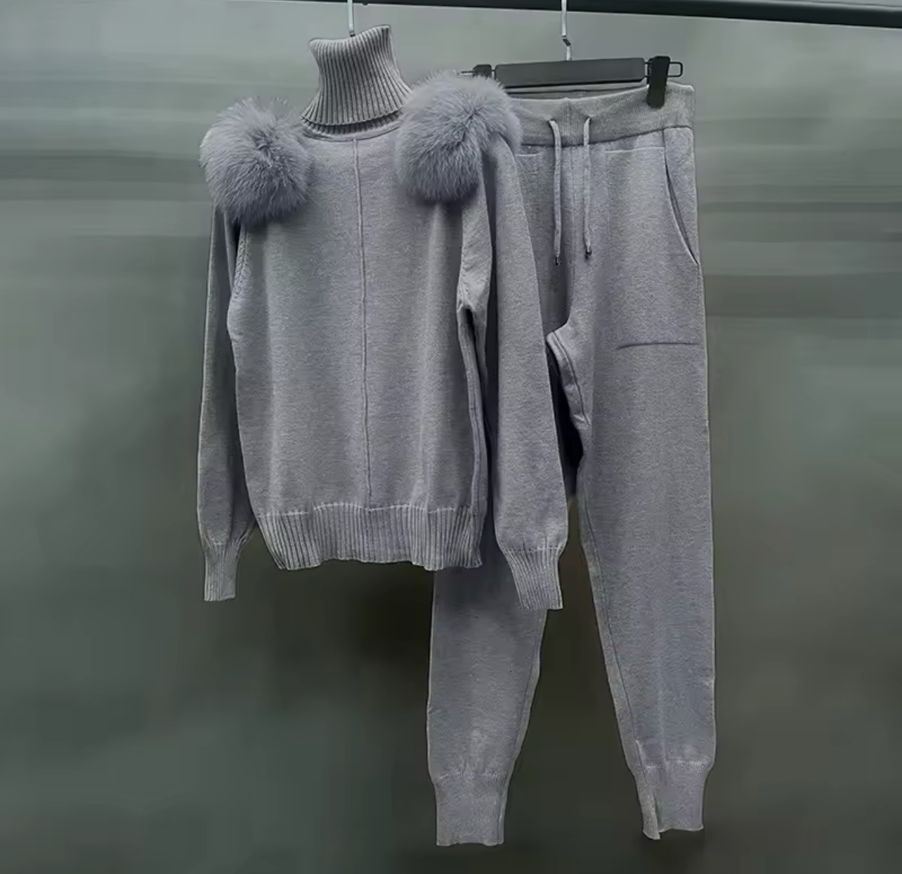 Conjunto Cahmere Pele Ombros e Calça com Punhos