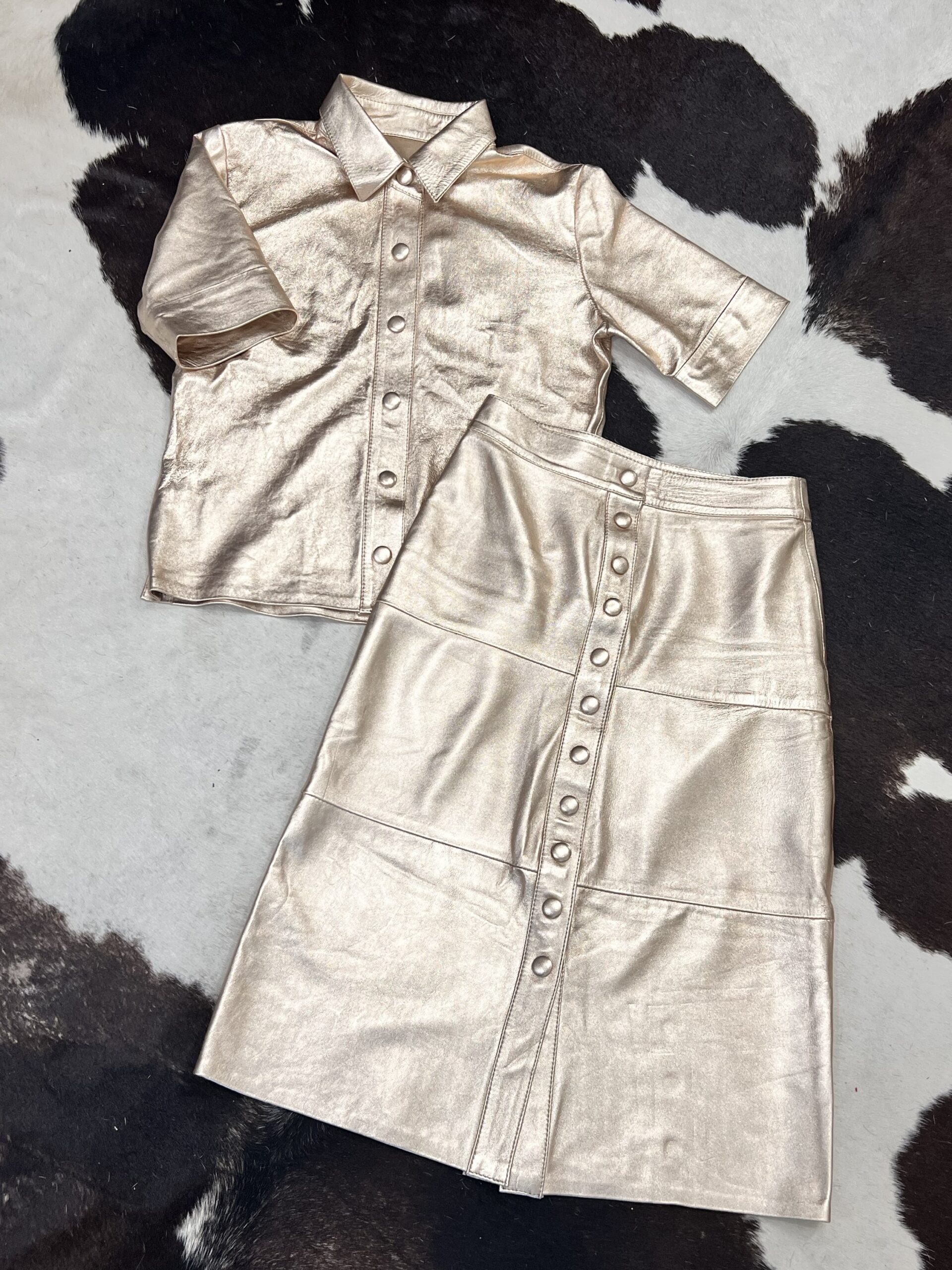 Conjunto Casaqueto Manga Curta e Saia Midi Botoes