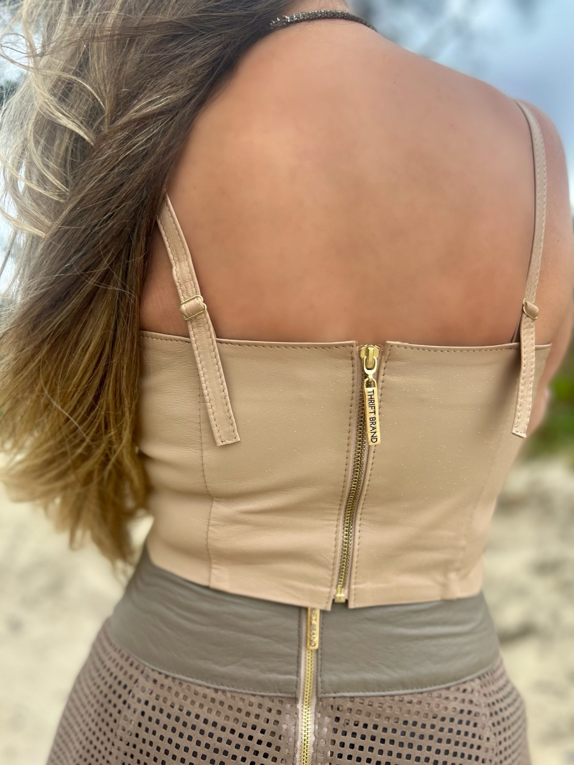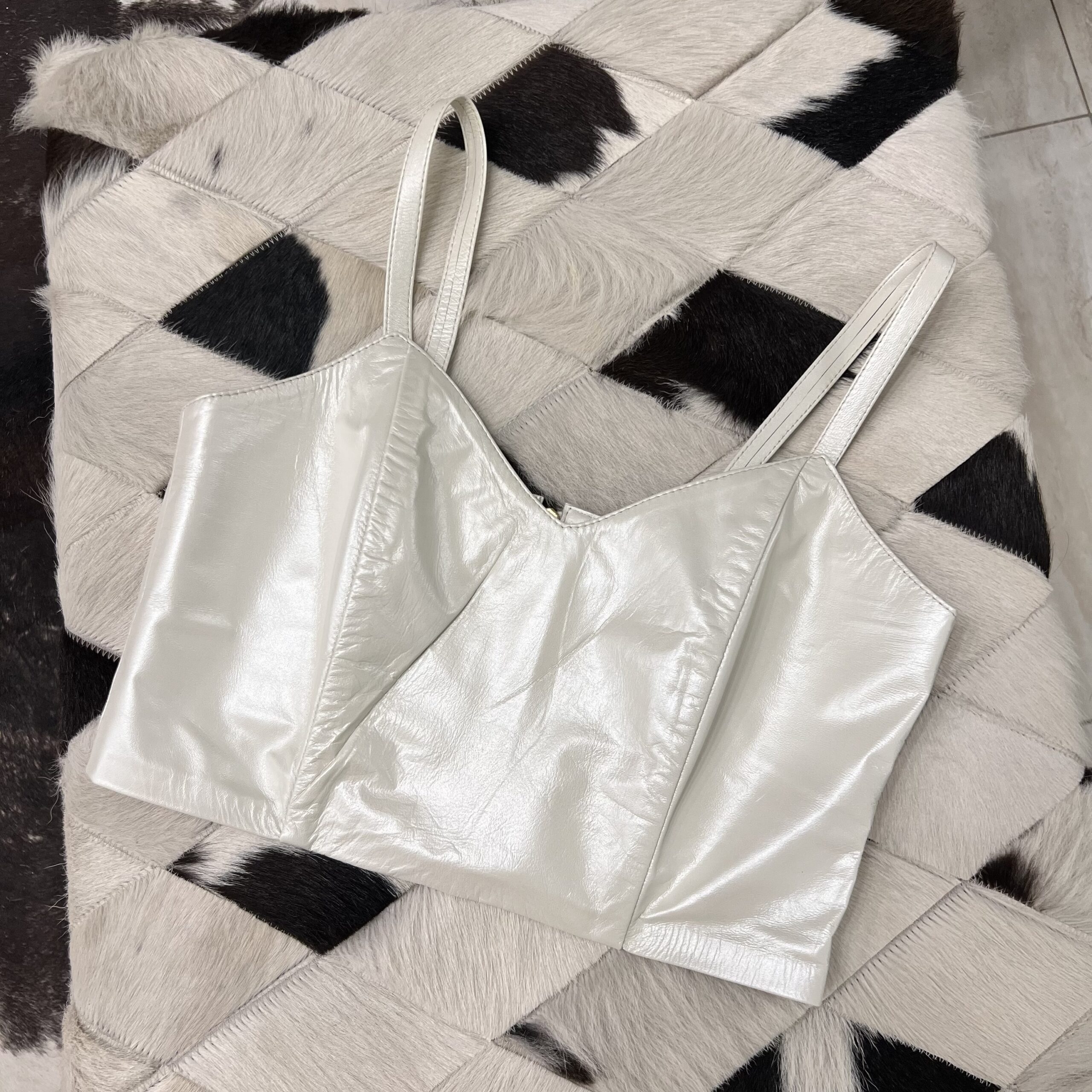 O Cropped Alcinha, com alça regulável, é a peça perfeita para adicionar um toque de frescor e modernidade ao seu guarda-roupa. Confeccionado em couro legítimo (couro pelica premium), este cropped apresenta alças delicadas que proporcionam um caimento ajustado e confortável, ideal para os dias mais quentes. Seu design cropped revela a cintura de maneira sutil, permitindo combinações versáteis com saias, calças e shorts, seja para um look casual ou mais elaborado.