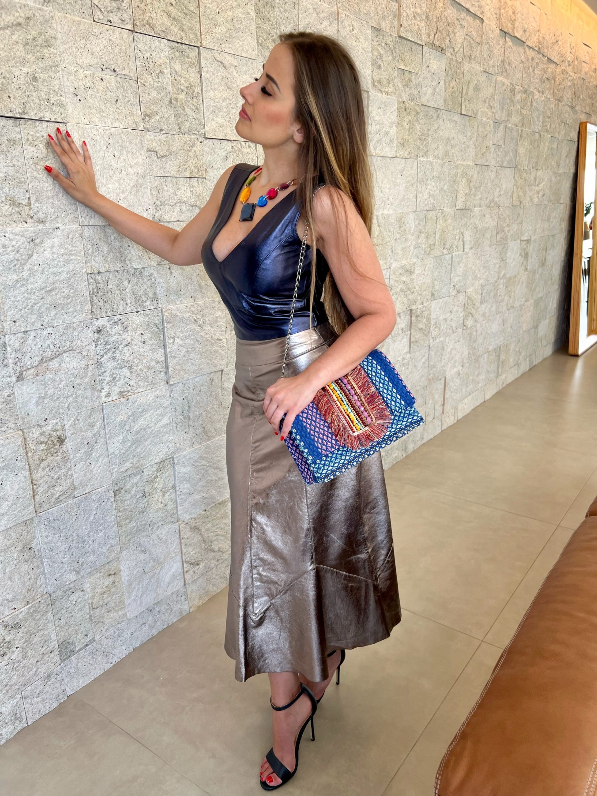 A Saia Midi Sereia é uma peça sofisticada que valoriza as curvas e proporciona um visual elegante. Com seu design exclusivo, ela é ideal para criar looks marcantes para qualquer ocasião!