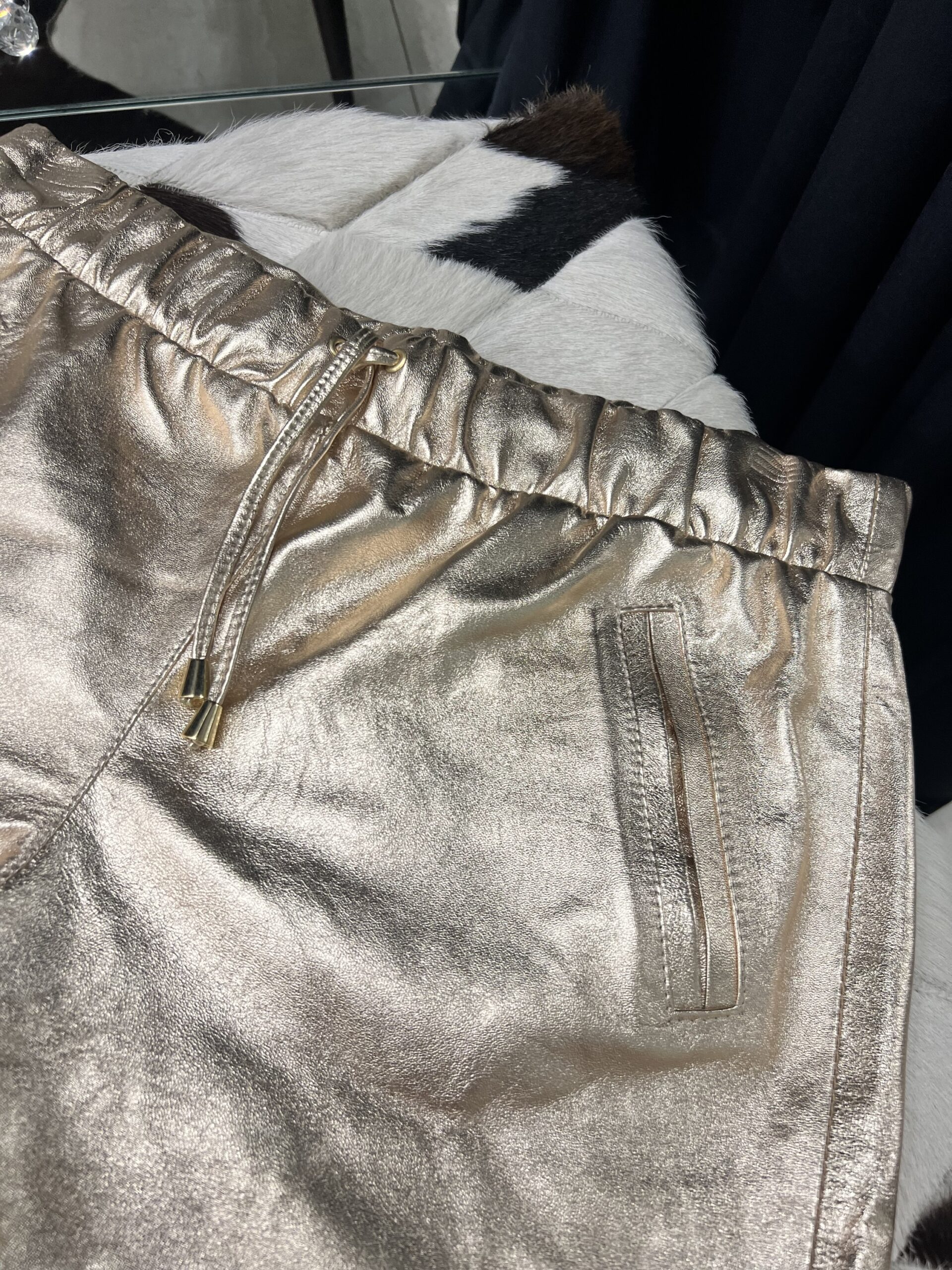 Short bomber com elástico na cintura, cordão em couro para regulagem e bolsos faca.